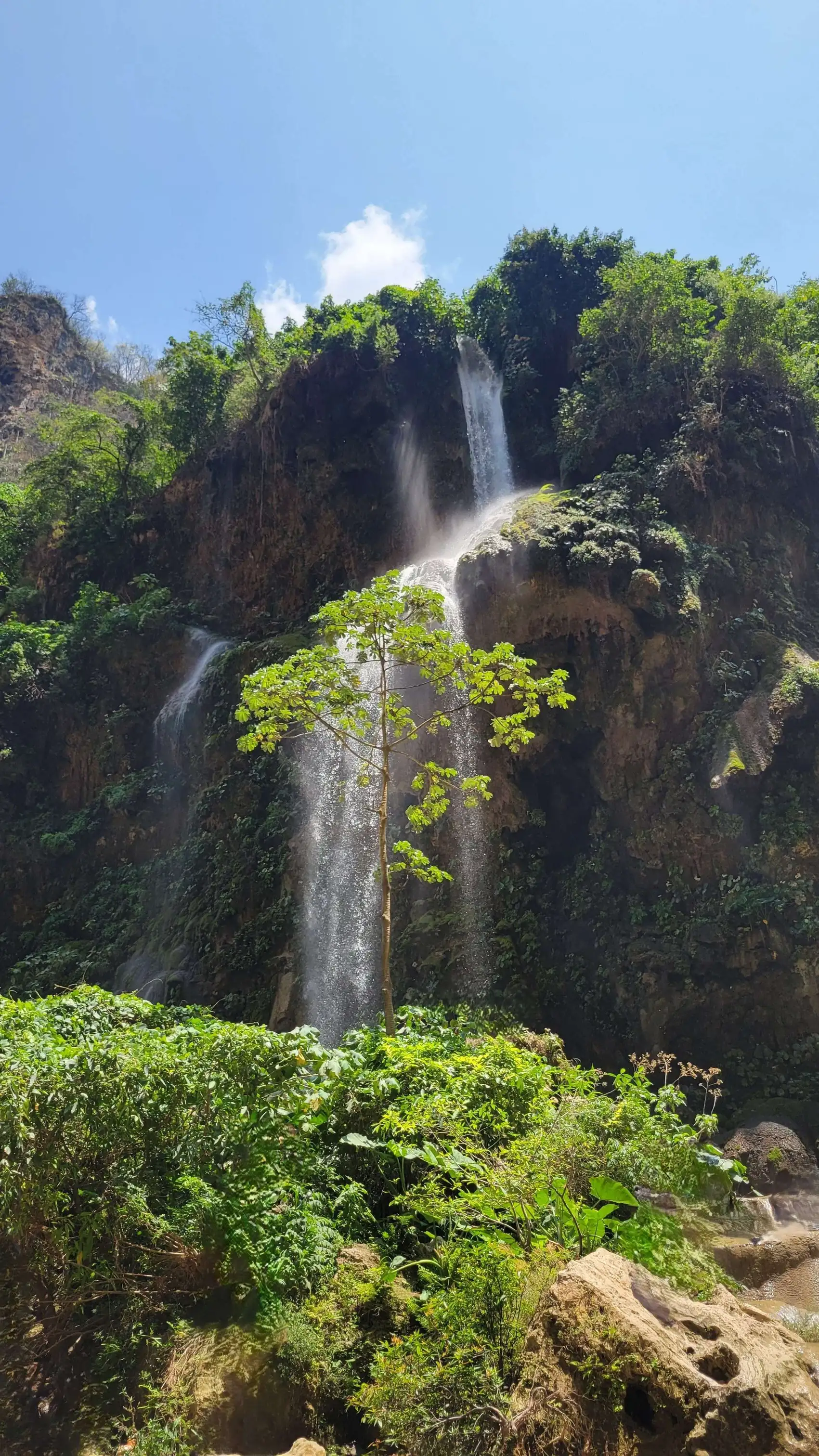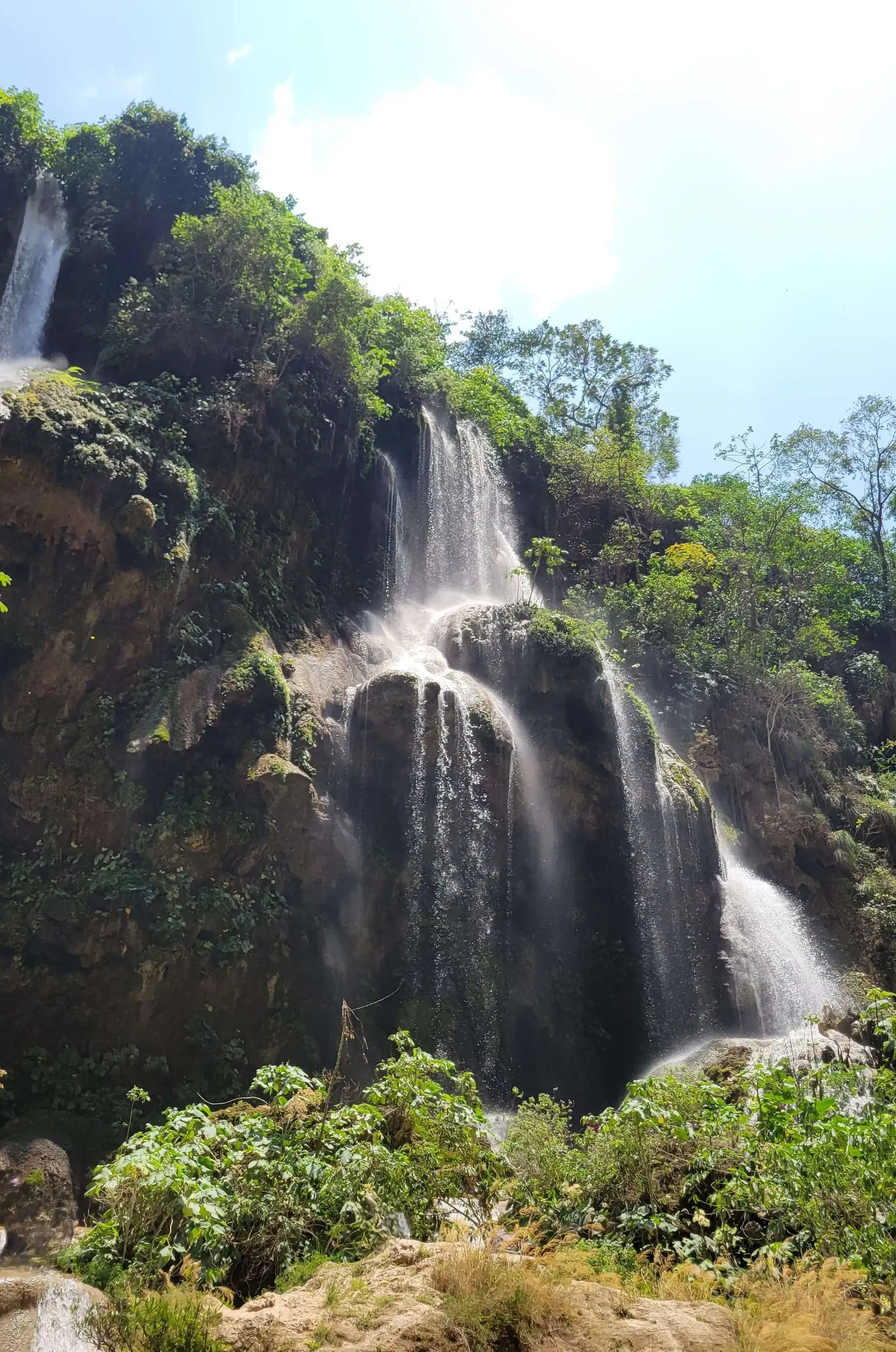 Este paraje acuático es ideal para aquellos que buscan conectar con la pureza de la naturaleza, sumergirse bajo cortinas de agua y explorar pasajes donde la luz y la selva se encuentran. El sonido incesante de su cascada proporciona verdaderos "baños fortalecedores".